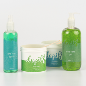The pre and post waxing range includes a pre wax spray with Tea Tree and Aloe, a Lavender scented waxing oil, calming After Wax Lotion with Lavender and Aloe, an Aloe Vera gel and a purified talc. The products are cruelty free, made with natural ingredients and are largely vegan.