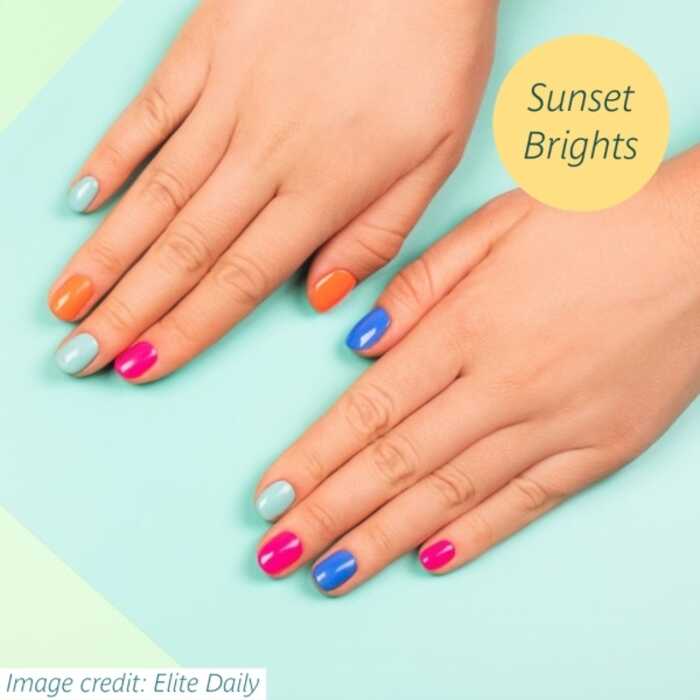 Whatever the weather is like outside, you can guarantee that this nail colour trend will add some sunshine to your day. Think deep, fuchsia pinks, opulent oranges and vibrant yellow tones for this trend.