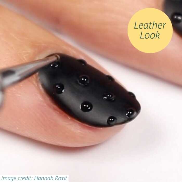 Think deep brown and dark hues with an opaque finish for this trend. This is certainly a trend for the more fashion-forward client and allows for experimentation with embellishments. Think studded leather recreated with nail-art and jewel embellishments.